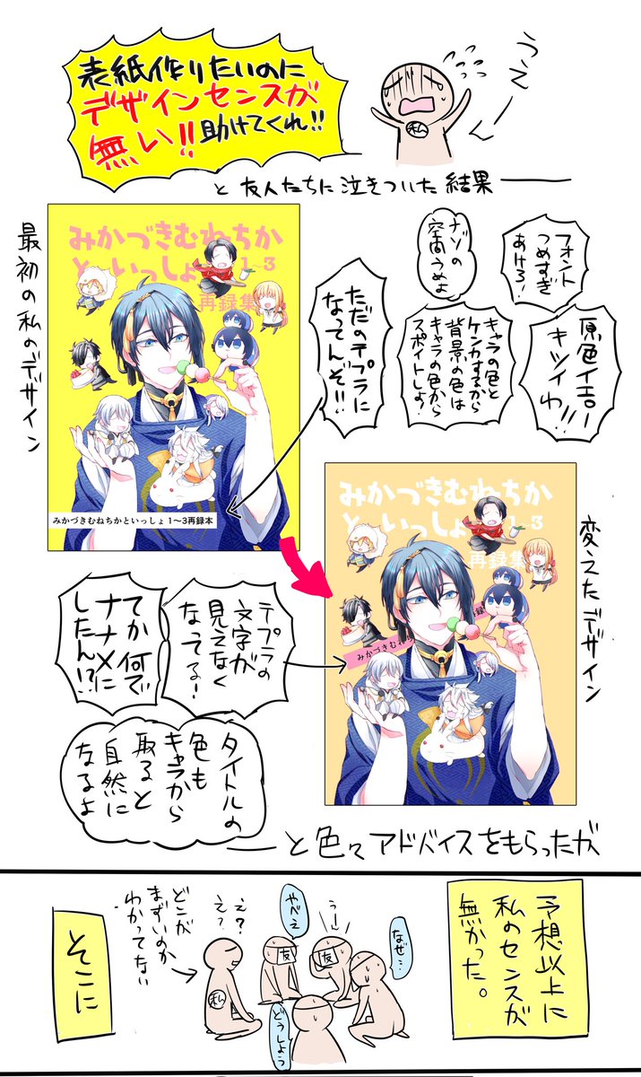 同人誌の表紙デザインが上手くいかなかったらデザイナーさんの友人たちが助けてくれた 書店で売られてるクオリティにまで大変身 Togetter